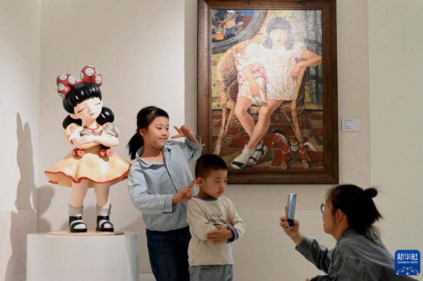 10月7日,游客在敦煌无界常沙娜艺术中心拍照。